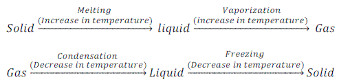 When camphor is heated it changes into vapor without changing into liquid. When the vapor of camphor is cooled it changes into solid without changing into liquid.