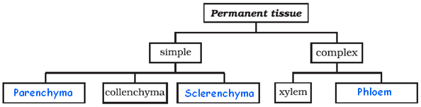 (a) Simple Permanent Tissue: Simple permanent tissue is composed of similar types of cells. Simple permanent tissues are of three types, viz. parenchyma, collenchyma and sclerenchyma.