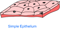 The epithelial tissue forms the covering or lining of most of the organs. The cells of epithelial tissue are tightly packed and form a continuous sheet. There is small amount of cementing materials between the cells and no intercellular space is present. Permeability of the epithelial tissue plays a great role in exchange of materials among various organs it also plays an important role in osmoregulation. All epithelial tissues are separated by the underlying tissue by an extracellular fibrous basement membrane. Epithelial tissues are of following types:
