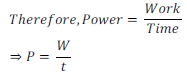 Where, ‘P’ is power, ‘W’ is work done, and ‘t’ is time taken in work done.